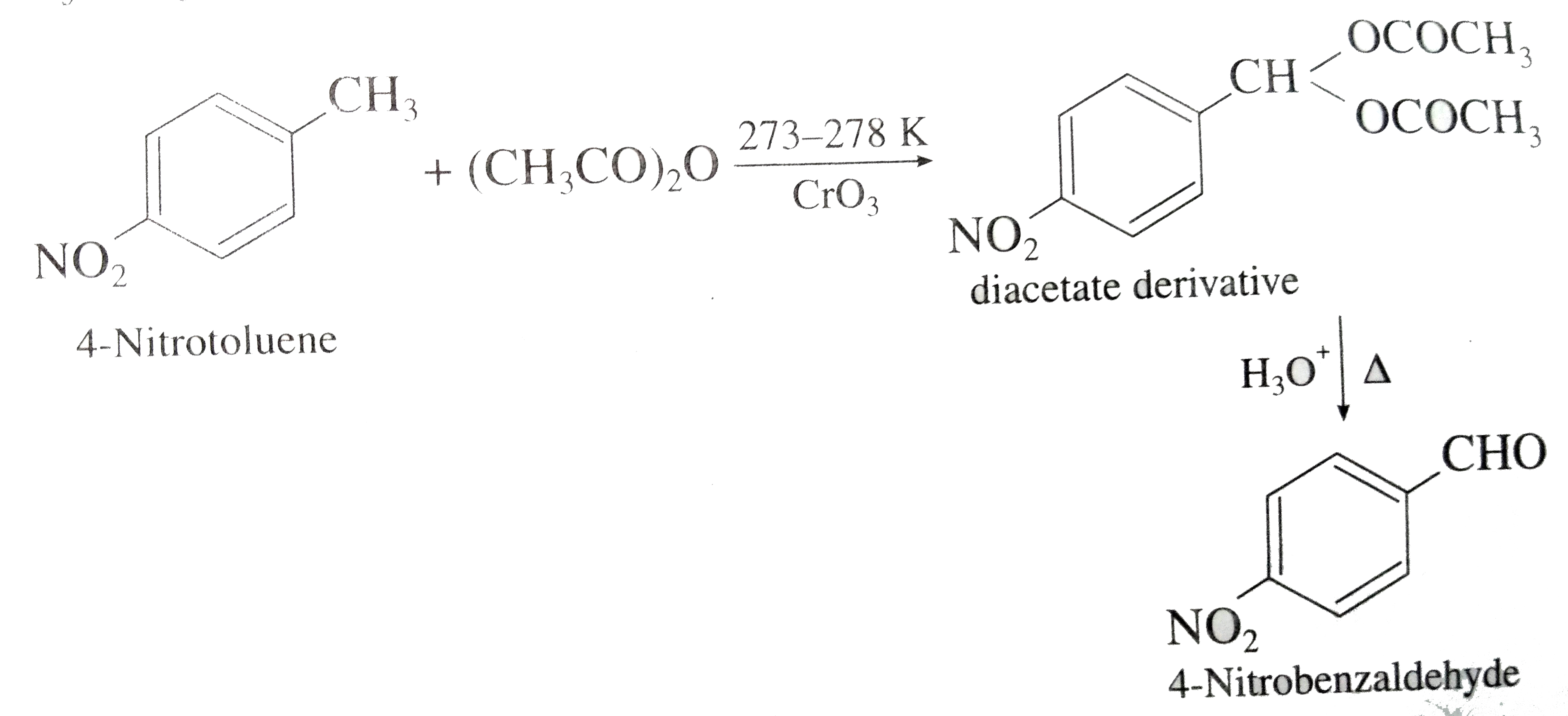 Answer» Solution :When 4-nitrotoluene is TREATED with chromium oxide inacetic ANHYDRIDE, a diacetate derivative is OBTAINED which on ACID hydrolysis PRODUCES 4-nitrobenzaldehyde.