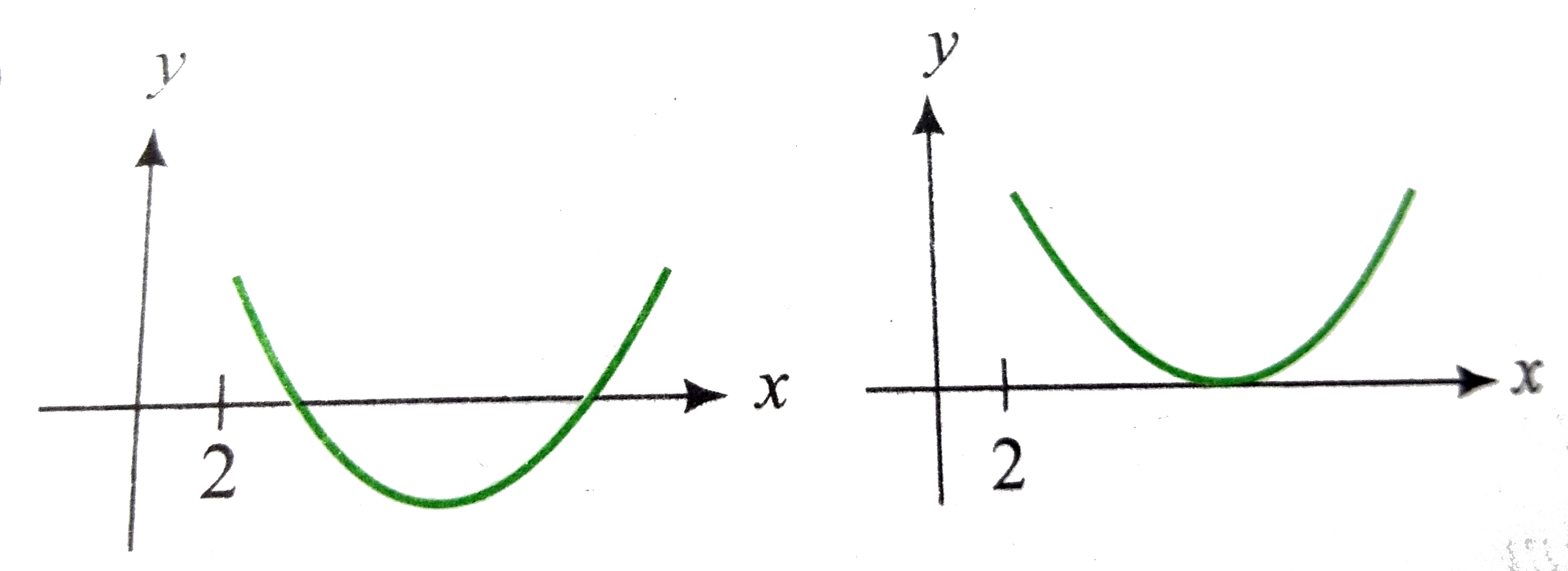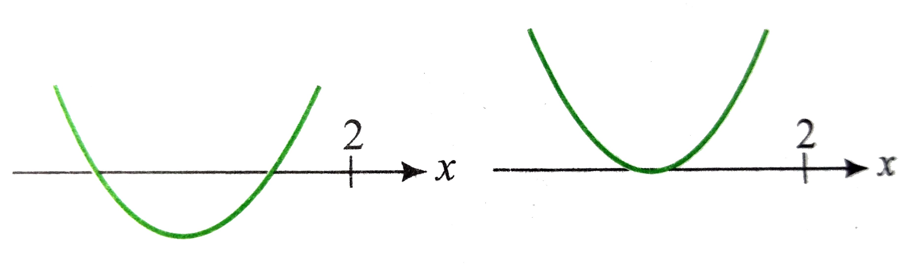 Answer» Solution :Let`f(X)= x^(2)- m ( m - 3) x + m = 0` (i) Both the roots are real and DISTINCT. So, `D gt`0 `rArr(m - 3)^(2) - 4m gt ` 0 or`m^(2) - 10m + 9 gt`0 or`(m -1) (m - 9) gt` 0 `rArrm in (-infty, 1 ) cup (9, infty)` (ii) Both the roots are equal. So `D= 0` `rArrm = 9 or m = 1` (iii) Both the roots are imaginary. So, `D lt`0 `rArr( m - 1)(m - 9) lt` 0 `rArrm in` ( 1, 9) (iv) The roots are oppsite in sing . Hence, the product of root is negative. So, `m lt rArrm in (-infty, 0)` (v)Roots are equal in magnitude but opposite in sign . Hence, SUM of roots is zero as well asD`ge 0. ` So, m `in (-infty,1) cup (9, infty)` and`m - 3 = 0, i.e., m = 3` Hence, so such m exists. (vi) Both the roots are positive. Hence, `D lt ` 0, and both the sum and the product of roots are positive. So, m - 3`gt 0, m gt` 0and m `(-infty, 1] cup [9, infty)` m `in [ 9, infty)` (vii) At least one root is positive . Hence, either one rootis positive or both roots are positive . So, m`in (-infty, 0) cup [9, infty)` (ix) One root is smaller then 2 and the other root is greater than 2, i.e., 2 lies between the roots. So, `f(2) lt` 0 `rArr4 -2 (m - 3) + m lt` 0 `rArrm gt ` 10 (x) Both the roots are greater then 2. So, `f(2) gt 0, D ge 0, - (b)/(2A) gt` 2 `rArrm lt` 10 and m `in ( - infty, 1] cup [9, infty)` and m - 3 `gt`4 `rArrm in` [ 9, 10) (xi) Both the roots are smaller then 2. So, `f(2) gt 0, ge 0, - (b)/(2a) lt` 2 `rArrm in (-infty, 1]` Exactly one root lies in (1, 2) . So, `f(1) f(2) lt` 0 `rArr4(10 - m ) lt` 0 `rArrm in (10, infty)` (xiii) Both the roots lie in the interval (1, 2) . Then, D `ge 0 rArr(m - 1) (m - 9) ge` 0 `rArrm LE 1 or ge `9(1) Also `f(1) gt `0 and `f(2) gt 0 rArr10 lt ` m(2) and`1lt-(b)/(2a) lt 2 rArr 5 lt m lt 7`(3) Thus, no such m exists. (xvi)Cace I : Exactly one root lies in (1, 2 ). So, `f(1)f(2) lt 0 rArrm gt `10 Case II: Both the roots lie in (1, 2). S0, from (xiii), m `in phi`. Hence, m `in (10, infty`). For one root greater than 2 and the other root smaller than 1, `f(1)lt` 0 and `f(2) lt` 0 But `f(1) = 4. Thus, no such m exists. |