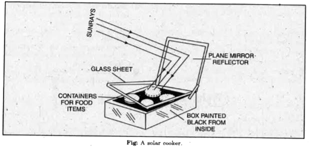 Describe a solar cooker. Give its adavantages. |